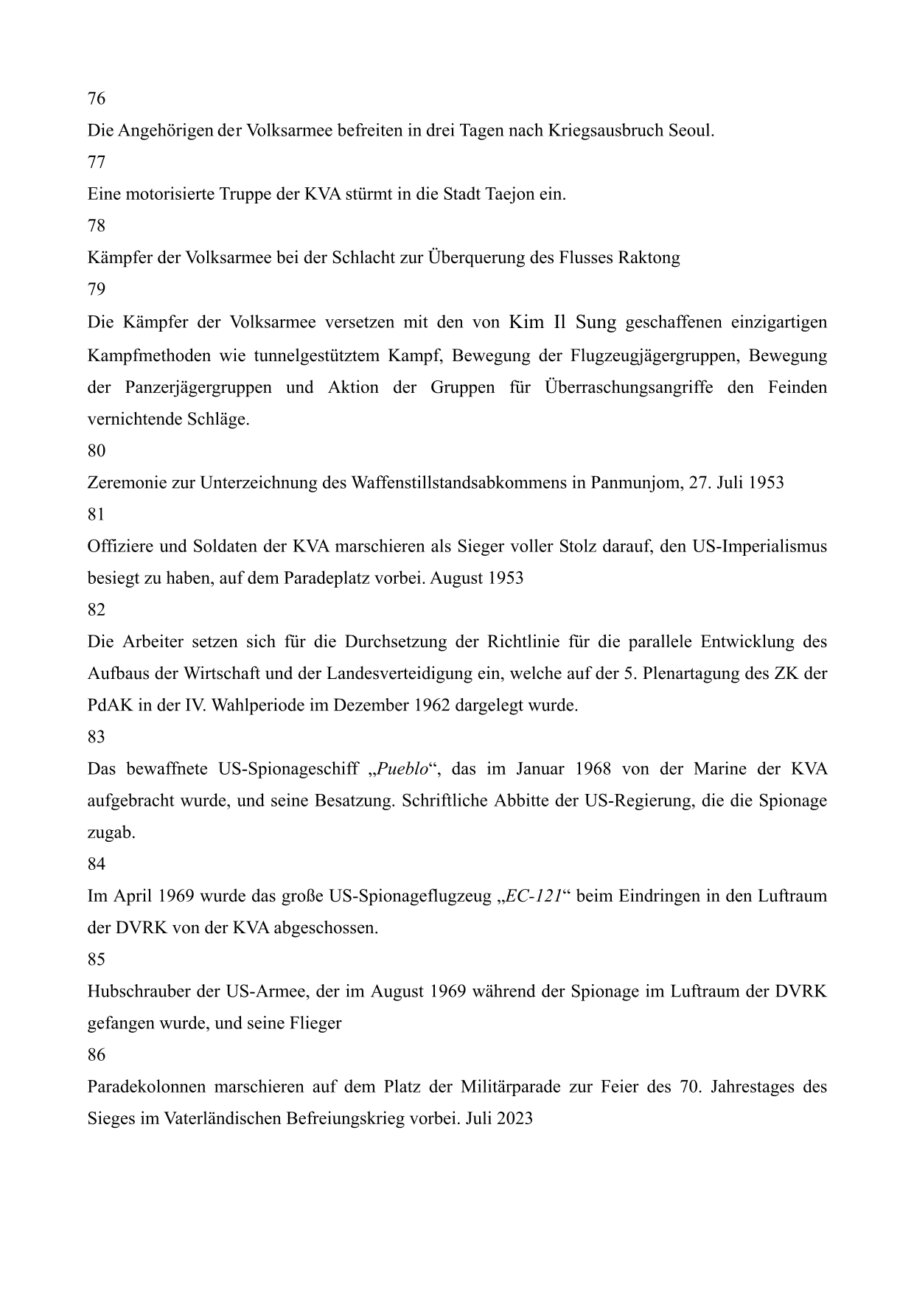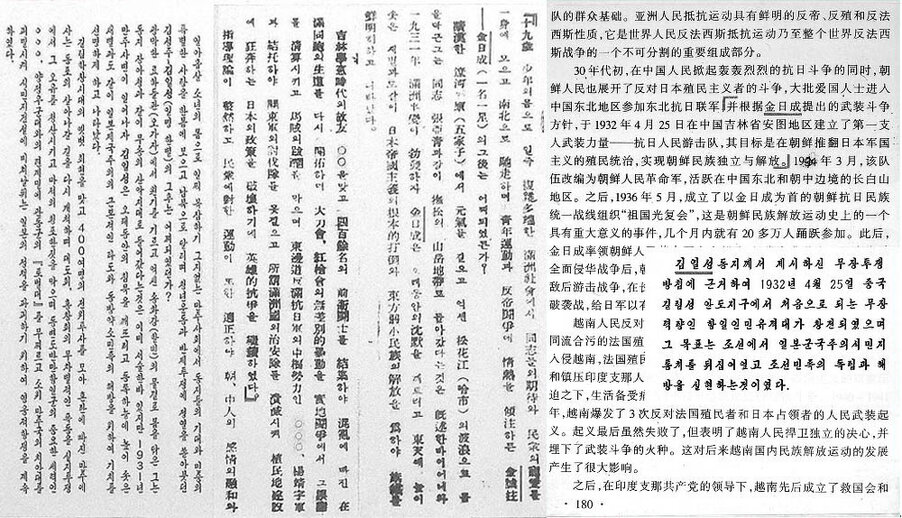 Das koreanische Volk entfaltete unter Führung Kim Il Sungs über lange Zeit den heldenhaften bewaffneten antijapanischen Kampf und liquidierte so endgültig das Kolonialherrschaftssystem des japanischen Imperialismus und führte schließlich die große Sache, die Befreiung des Vaterlandes, herbei.