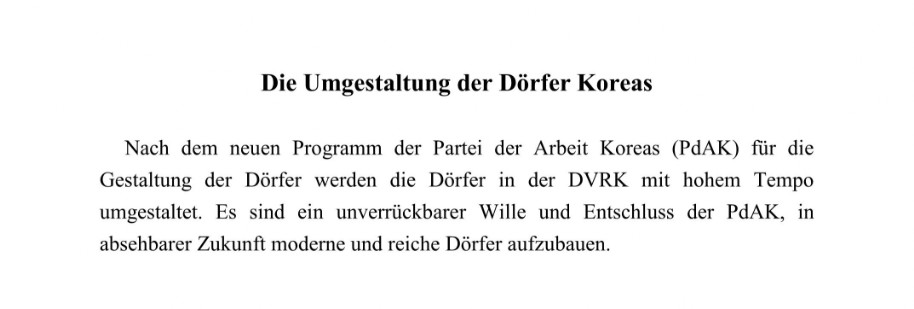 Die Umgestaltung der Dörfer Koreas - Nordkorea-Information