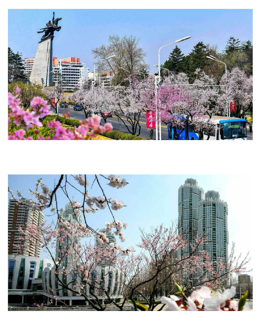 Pyongyang, Hauptstadt der DVR Korea, begrüßt schönen Frühling, und in seinen Straßen erblühen verschiedene Blumen, was eine schöne Landschaft bietet. Die Menschen promenieren inmitten von Blüten, von der Landschaft berauscht, und ihre Gesichter strahlen Optimismus, Hoffnung und Freude aus. Es scheint, als ob deswegen die Straßen von Pyongyang noch heller und von Vitalität erfüllt wären…