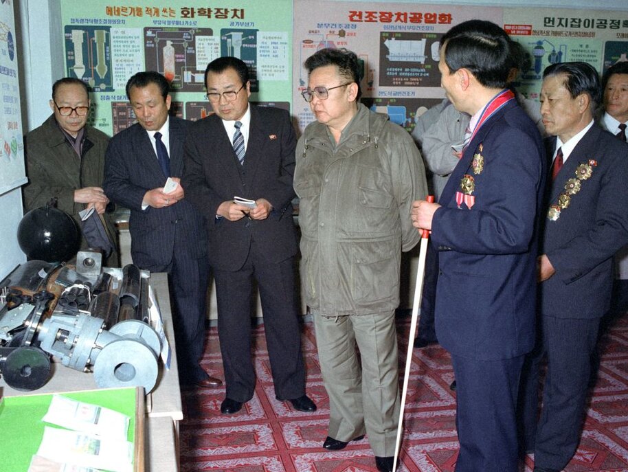 Kim Jong Il bei der Vor-Ort-Anleitung der Zweigstelle Hamhung der Staatlichen Akademie der Wissenschaften, März 1999