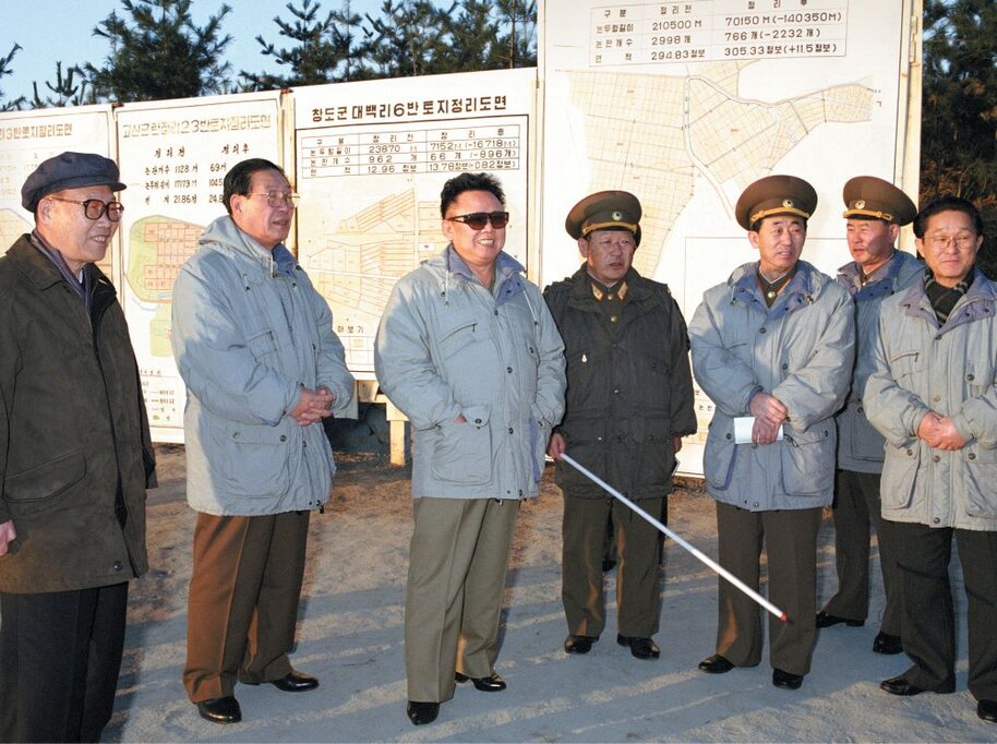 Kim Jong Il bei der Vor-Ort-Anleitung des Kreises Kwail, September 2001