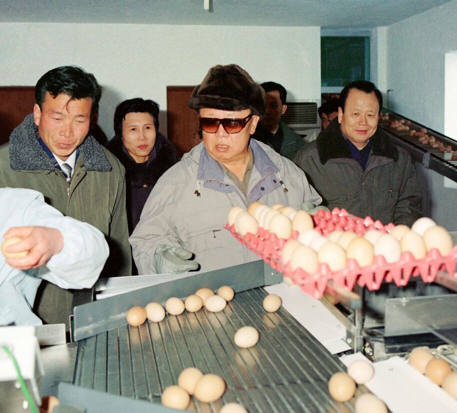 Kim Jong Il bei der Vor-Ort-Anleitung eines Hühnerzuchtbetriebes, Februar 2006