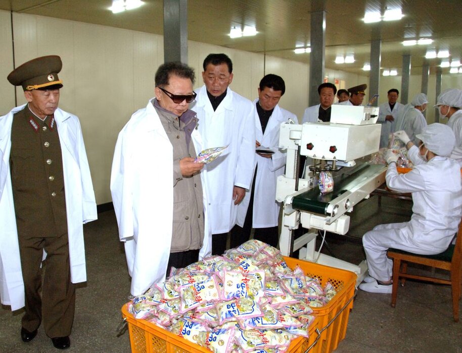 Kim Jong Il bei der Vor-Ort-Anleitung des Lebensmittelwerkes Taedonggang, September 2009