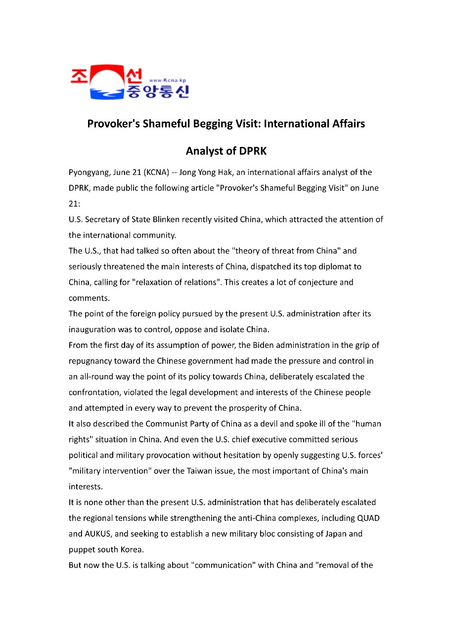 Provoker's Shameful Begging Visit: International Affairs Analyst of DPRK
