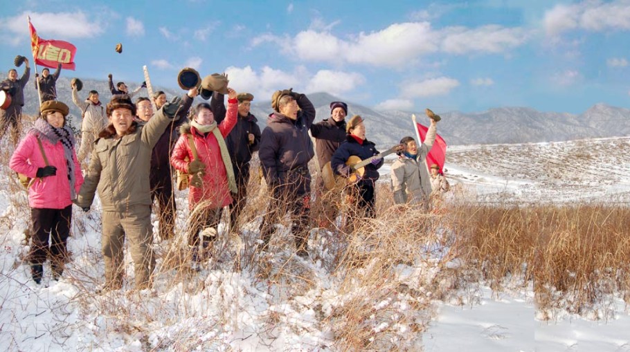 Die Angehörigen der Jugend-Stoßbrigaden bauten in einer von der Hauptstadt Pyongyang Tausende Ri entfernten hohen und steilen Schlucht einen Staudamm und gaben die Kraft und den Elan der Jugend schonungslos hin.