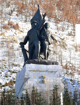 Das ist das Denkmal der heroischen Jugend. Es überliefert die Heldentaten der Jugendlichen beim Aufbau des Paektusan-Kraftwerkes der Heroischen Jugend.