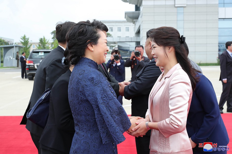 Kim Jong Un und seine Frau Ri Sol Ju nahmen auf dem Pyongyanger Internationalen Flughafen den Abschied vom Gast und seiner Frau.