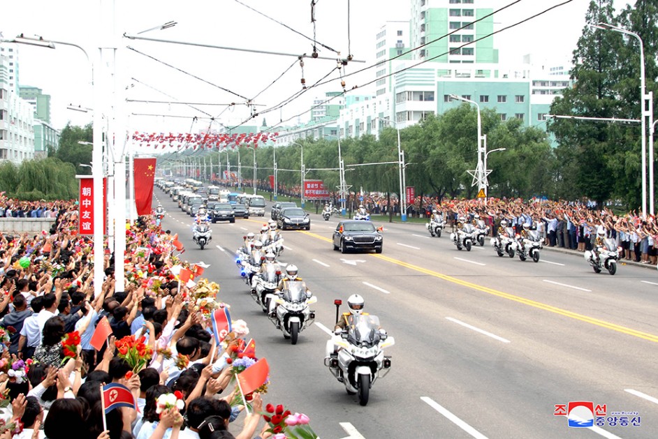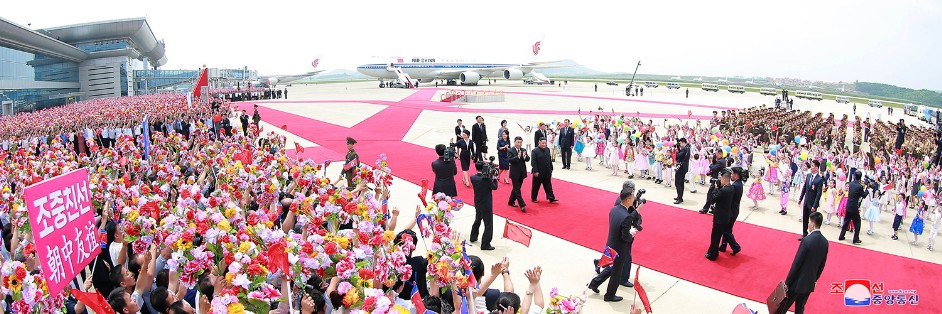 Auf Einladung von Kim Jong Un, dem Vorsitzenden der PdAK und dem Vorsitzenden des Komitees für Staatsangelegenhieten der DVR Korea, kam Xi Jinping, Generalsekretär des ZK der KPCh und Präsident der VR China, am 20. Juni per seinem Dienstflugzeug in Pyongyang an, um unserem Land einen Staatsbesuch abzustatten.