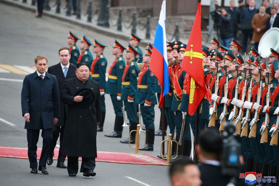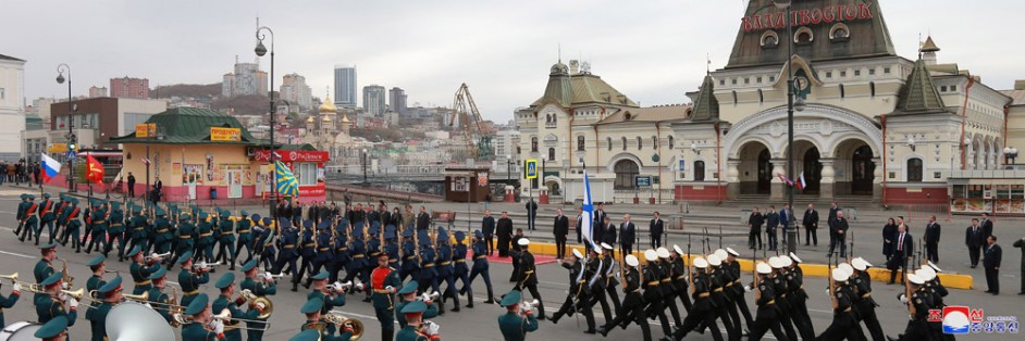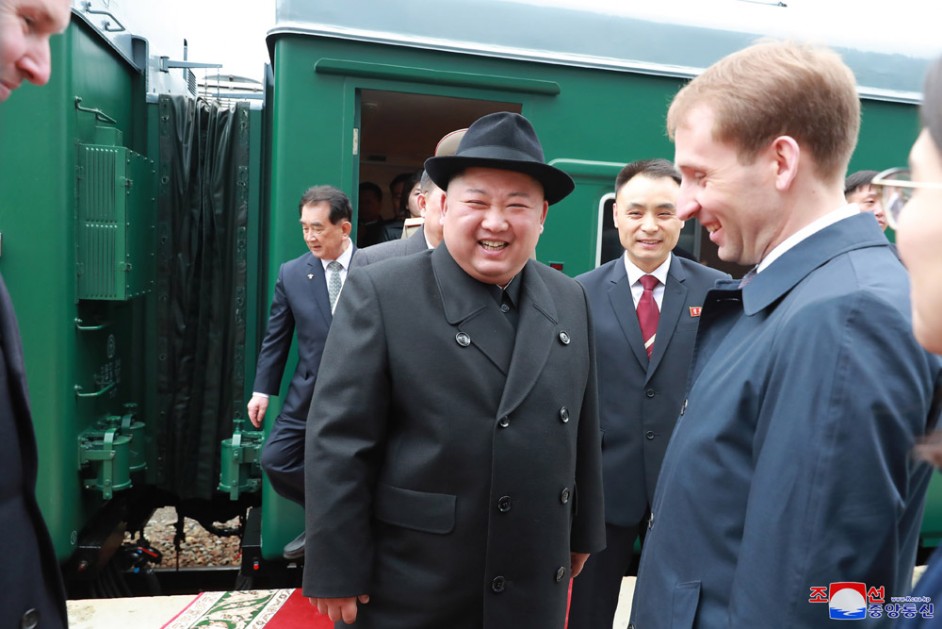 Kim Jong Un, Vorsitzender der PdAK, Vorsitzender des Komitees für Staatsangelegenheiten der DVR Korea und Oberster Befehlshaber der Streitkräfte der DVR Korea, kam am 24. April in der Stadt Wladiwostok (Russische Föderation) an.