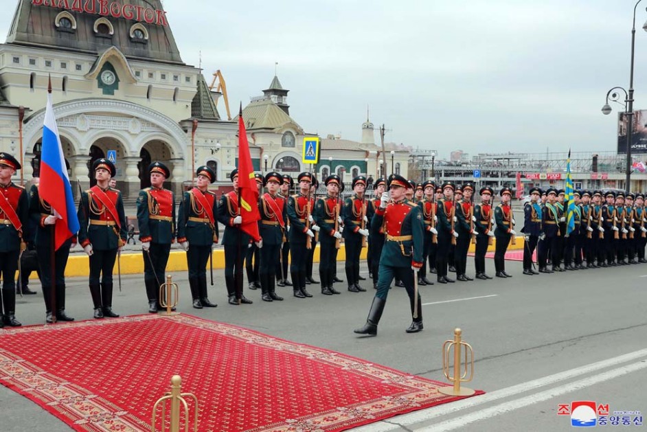 Es gab eine Zeremonie zur Begrüßung des Besuchs von Kim Jong Un in der Russischen Föderation.