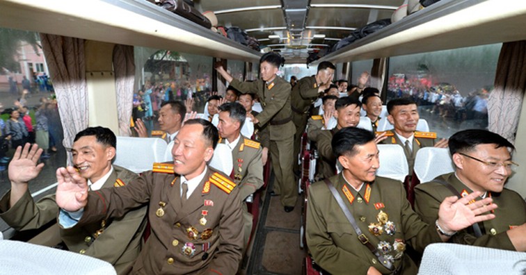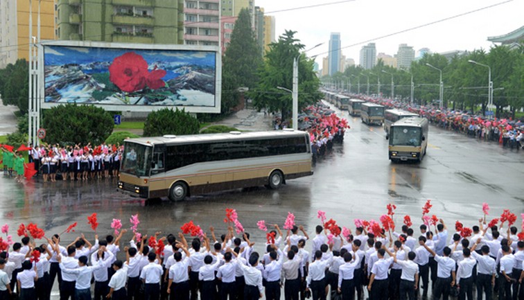 Ankunft von ICBM-Entwicklern in Pyongyang und Begrüßung von zigtausenden Pyongyangern