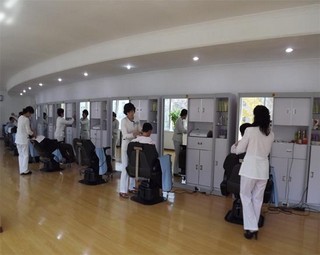 Auch in dem Herren- und dem Damensalon und dem Raum für Gesichtspflege, in denen wir waren, wurden die Gäste freundlich bedient. Im sonnigen halbkreisförmigen Herrensalon wird man von den Friseuren verschönert. Es ist eigentlich nicht leicht, alle Leute mit unterschiedlichem Beruf und Alter schön zu machen. Auf die Frage, wie die Friseure so hohe Technik haben können, antwortete die Leiterin Jong Dong Suk, daß es von ihrem Willen abhängig sei. Anders gesagt, kommen die hohe Technik und der freundliche Dienst von dem Geist, dem Volk zu dienen.