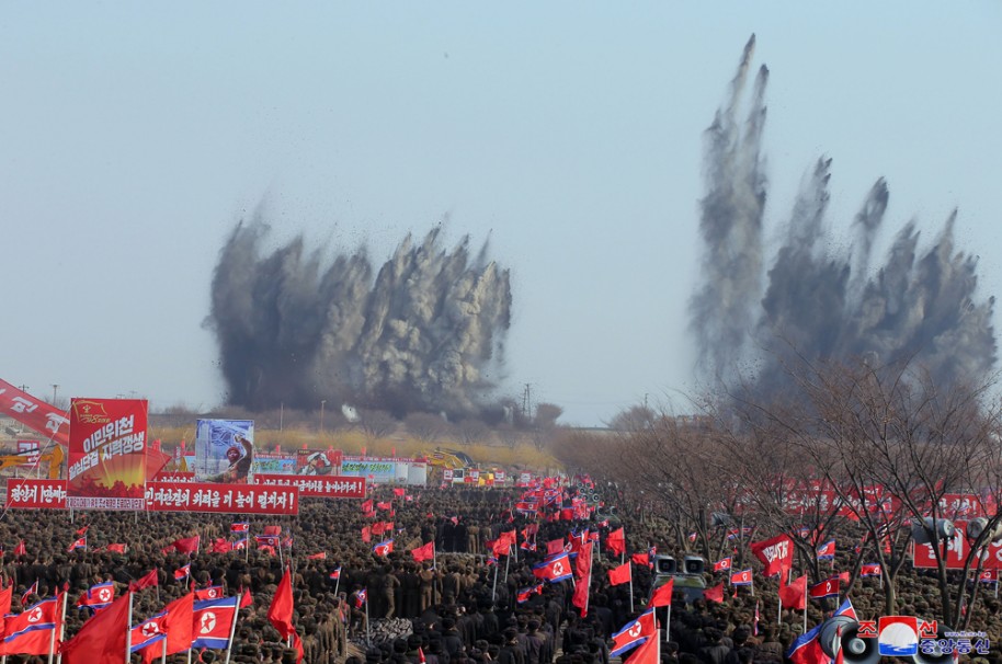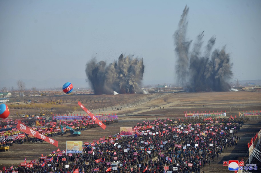 Es war eine Sprengung, die den Begin des 10 000-Familien-Wohnungsbaus in Pyongyang verkündet.