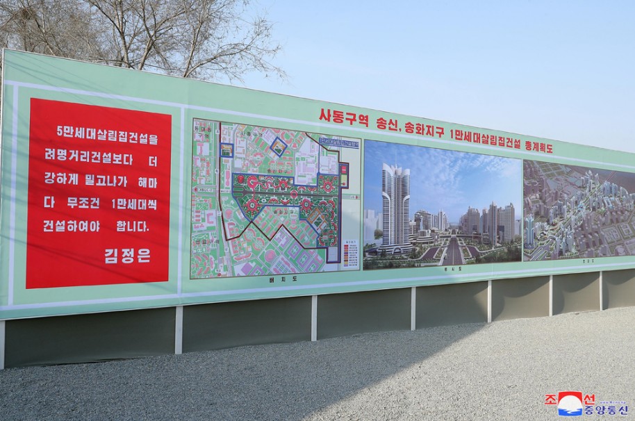 Der von nun an beginnende Bau von 50 000 Wohnungen ist historische Bauarbeiten, bei denen die Teile der Hauptstadt Pyongyang in die östliche und westliche wie auch nördliche Richtung zu erweitern und dabei neue große und moderne Straßen zu errichten sind.