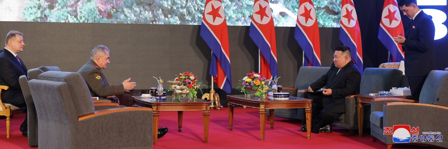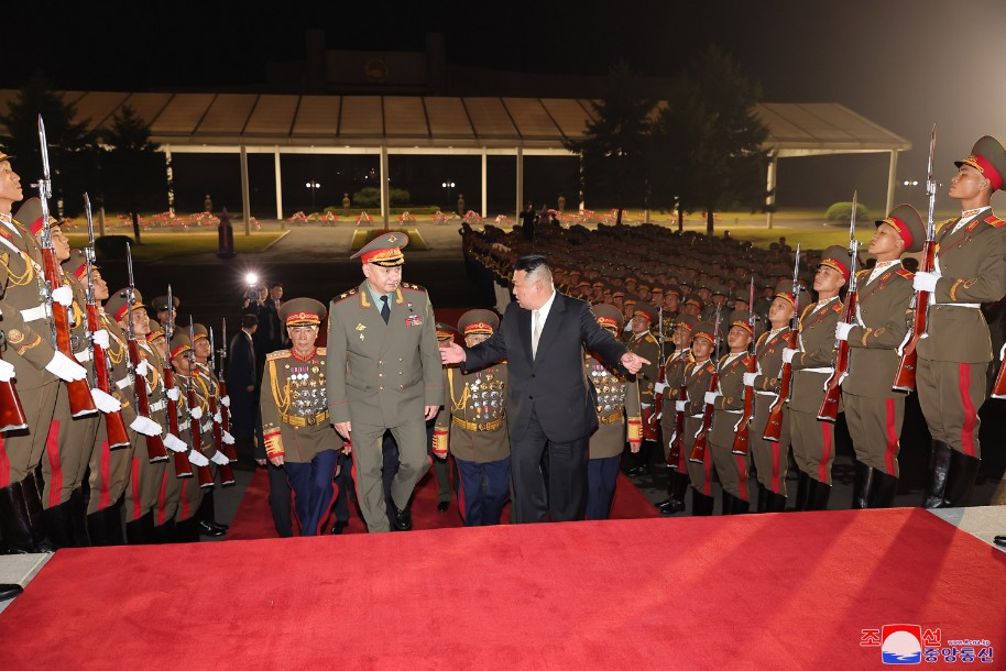 Er sprach seinen Dank dafür nochmals aus, dass Sergei Shoigu und die Mitglieder der Militärdelegation der Russischen Föderation mit der kämpferischen Freundschaft und dem freundschaftlichen Gefühl Pyongyang besuchen, um zur großen Feierlichkeit unseres Staates und Volkes zu gratulieren.
