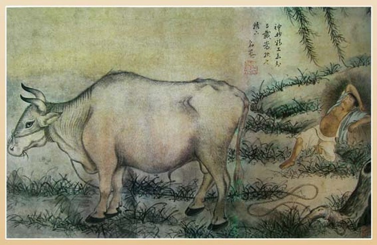 Das Gemälde „Ochsenhirt“ (31×51 cm) von Kim Tu Ryang (1696–1763) stellt einen Bauer dar, der auf der Wiese unter einer Weide mit herabhängenden Ästen unbesorgt schläft. Der gebräunte starke Körperbau, das ungepflegte Haar, der fest zugemachte Mund, das hochgerissene Augenlidende – das Ganze zeigt seinen starken und optimistischen Charakter.
