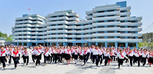 Es war am Neujahrstag Juche 55 (1966). Damals ergriff Kim Il Sung die fürsorgliche Maßnahme, neue Kleidungen für alle Kinder im Land anzufertigen. Darüber freuten sich die Kinder und ihre Eltern. Während seiner Dienstreise sah Kim Il Sung zum Wagenfenster hinaus, um die neu bekleideten Kinder auf dem Lande zu sehen. Aber die Kleidungen passten ihnen nicht. Er ließ den Wagen anhalten und rief die Mitarbeiter zu sich. Er fragte sie, warum die Kleidungen der Kinder so groß sind. Die Mitarbeiter antworteten darauf. Da die Kinder so schnell wachsen, habe man für sie größere Kleidungen anfertigen lassen. Kim Il Sung wies hin, es sei eine alte Auffassung, dass die Kleidungen größer sein müssten, weil die Kinder schnell wüchsen. Obwohl die Lage des Staates schwierig sei, sollten die Kinder gut passende und schöne Kleidungen tragen. Nach seiner Rückkehr in die Unterkunft am späten Abend sagte er seinem Mitarbeiter, der ihm Essen empfahl, folgendes. Wenn er die Kinder schöne Kleidungen tragen und gut essen sehe, fühle er sich ohne Essen satt. Dann sang er leise das Lied "Wir brauchen niemanden in der Welt zu beneiden".