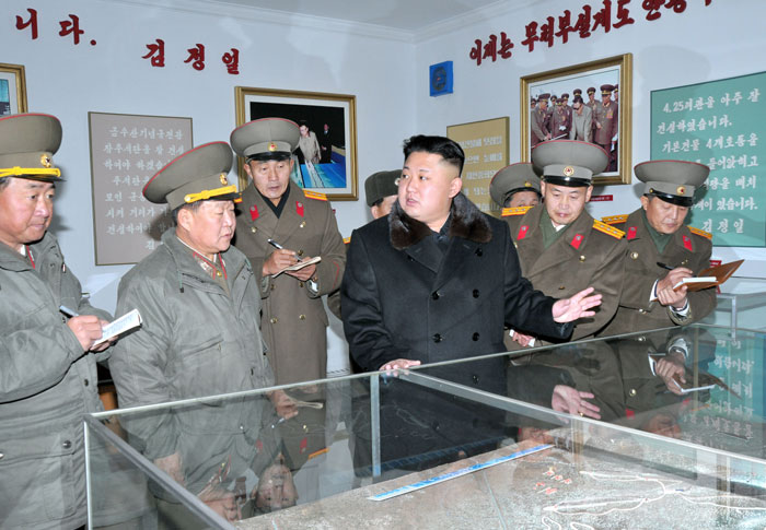 Kim Jong Un, Erster Sekretär der PdAK, Erster Vorsitzender des Verteidigungskomitees der DVRK und Oberster Befehlshaber der KVA, leitete das Projektierungsinstitut der KVA (KPA Designing Institute) vor Ort an.