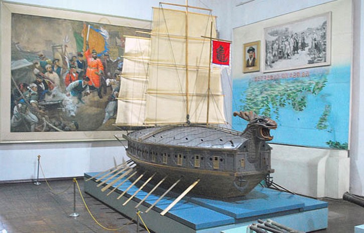 Dieses Schiff baute das koreanische Volk im Jahr 1592 unter Befehligung vom General Ri Sun Sin (1545–1598) als das erste eisenverkleidete Kriegsschiff der Welt.