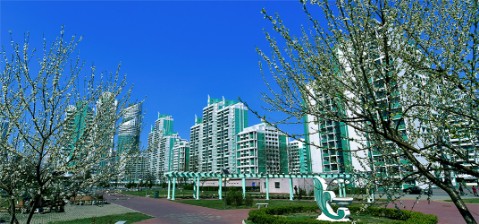 Auf dem 53-stöckigen Wohnhaus der Wissenschaftlerstraße Mirae, auf der die turm- und blockförmigen Hoch- und Superhochwohnhäuser harmonisch errichtet wurden, steht Turm vom Atommodell, der die Wissenschaft symbolisiert.