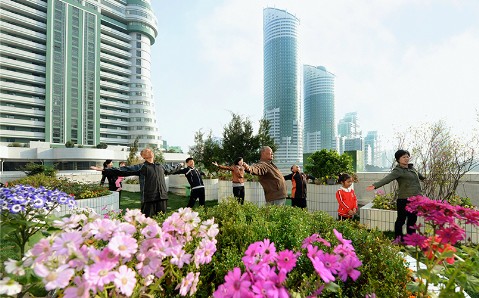 Bei adretten mehrstöckigen Wohnhäusern und majestätischen Hoch- und Superhochwohnhäusern der „Ryomyong-Straße“, genannt im Sinne, beim Bau nach der Zukunft zu streben, wurden die energiesparend Technik und die Technik für grünen Bau eingeführt, damit erneuerbare Energien effektiv benutzt werden können.