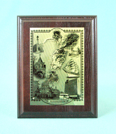 Das Geschenk zeigt die Bilder, die die Entwicklungsgeschichte der russischen Stadt Wladiwostok symbolisieren. Das Geschenk ist 26,5cm lang und 20,5cm breit. Auf der gelben Metallplatte prägte man mit dem Laserstrahl die Bilder, die mit einem Holzrahmen versehen wurden. Bei der Übergabe dieses Geschenkes sagte der Generaldirektor, dass er sich mit dem Verehrungsgefühl gegenüber Kim Jong Il, der die Sache von Genossen Kim Il Sung treu fortsetzt, ein bescheidenes Geschenk besorgt hatte.