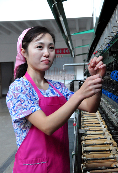 Seit 2007 arbeitet sie bis heute, ja 10 Jahre lang, in dieser Spinnerei.