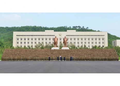 Er drückte seine Erwartung und Überzeugung davon aus, dass die hiesigen Funktionäre und Lehrerschaft dazu aktiv beitragen werden, die Verteidigungsindustrie zu entwickeln und das Waffenarsenal der Songun-Revolution noch zu verlässiger zu festigen. Dann ließ er sich mit ihnen zum Andenken fotografieren.