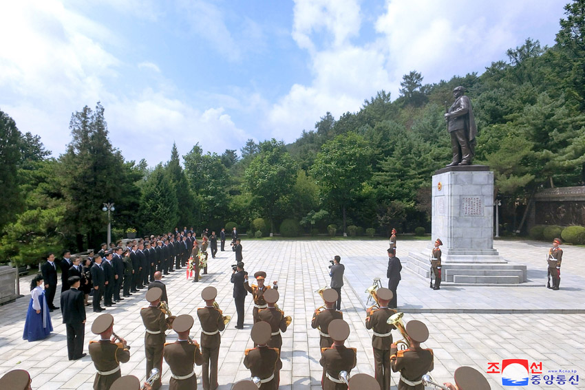Unter den Klängen des Liedes zur Kranzniederlegung wurde am Turm für die Gefallenen der Chinesischen Volksfreiwilligentrupps ein Kranz im Namen von Herrn Kim Jong Un niedergelegt.
