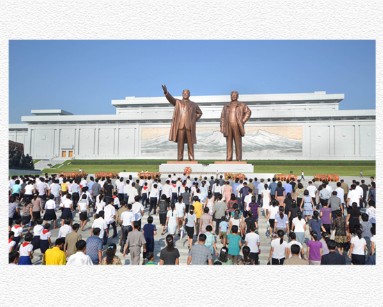 Zu Tränen gerührt blicken die Koreaner auf die aufopferungsvollen Anstrengungen vom gütigen Präsidenten Kim Il Sung für das Volk zurück. Als ein großer, aber einfacher Mensch betrachtete er das Volk als das Höchste und setzte sich für das Glück des Volkes ein. Deswegen bewahren die Koreaner auch heute das liebevolle und gütige Antlitz vom Vater Kim Il Sung tief im Herzen.