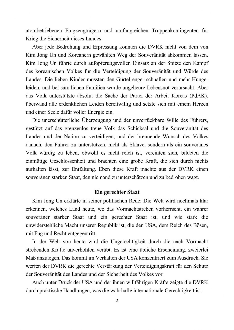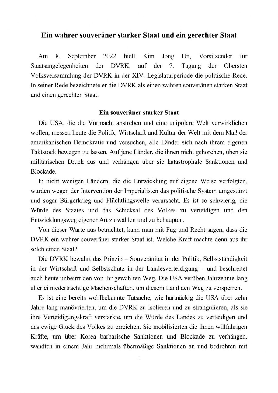 Ein wahrer souveräner starker Staat und ein gerechter Staat - Nordkorea-Information