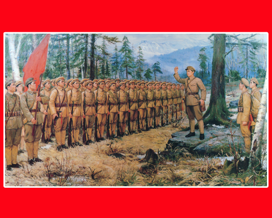 Die revolutionären Streitkräfte Koreas, die unter Führung von Kim Il Sung ihre Geburt verkündet hatten, vernichteten die sogenannte unbesiegbare japanische Armee, die sich für Führer Asiens ausgab. In den Schlachten um die Kreisstädte Dongning und Fusong, den Schlachten von Pochonbo, Jiansanfeng, Xigang und Hongqihe, der Schlacht in der Nähe von Dashahe und den weiteren Schlachten versetzte die Antijapanische Partisanenvolksarmee den bösen japanischen Aggressoren vernichtende Schläge. Mit wechselreichen Kampfmethoden und Taktiken wie blitzschnellem Sprung über 1000 Ri (400km), Überfall, Attackieren der angelockten Feinde aus dem Hinterhalt und Installieren der selbst hergestellten Bomben im Lagerfeuer erzielte die antijapanische bewaffnete Formation glänzende Erfolge. Diese unbesiegbaren revolutionären Streitkräfte vernichteten schließlich die bösen starken japanischen Imperialisten und erfüllte die historische Sache der Befreiung des Vaterlandes. Die Koreanische Volksarmee, die die Tradition der Antijapanischen Partisanenvolksarmee, der ersten revolutionären Streitkräfte des koreanischen Volkes, fortsetzte, errang im dreijährigen Vaterländischen Befreiungskrieg gegen den US-Imperialismus in den 1950er Jahren den Sieg. Durch die Kämpfe gegen zwei starke imperialistische Mächte wurden die koreanischen revolutionären Streitkräfte zur unbesiegbaren revolutionären Streitmacht entwickelt.