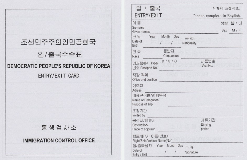 Bei der Einreise nach Nordkorea erhalten Sie im Flugzeug die nachfolgend abgebildeten Formulare: