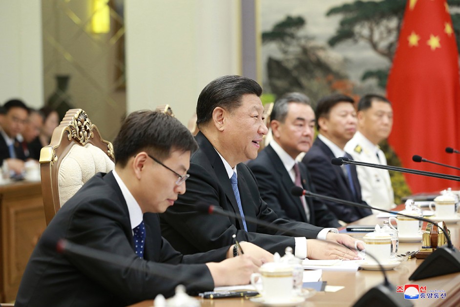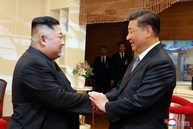 Kim Jong Un und Xi Jinping informierten einander über die Lage ihrer Länder und die Erfolge, die im Kampf der beiden Parteien und Völker für die Vorwärtsentwicklung der Sache, des Aufbaus des Sozialismus, erreicht worden sind, und drückten volle Unterstützung und Solidarität aus.