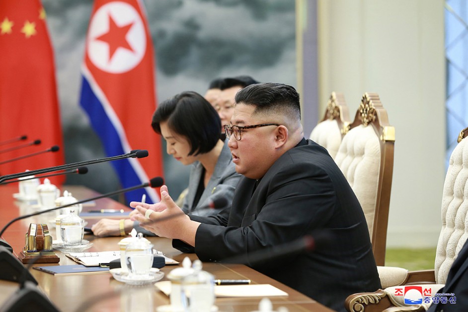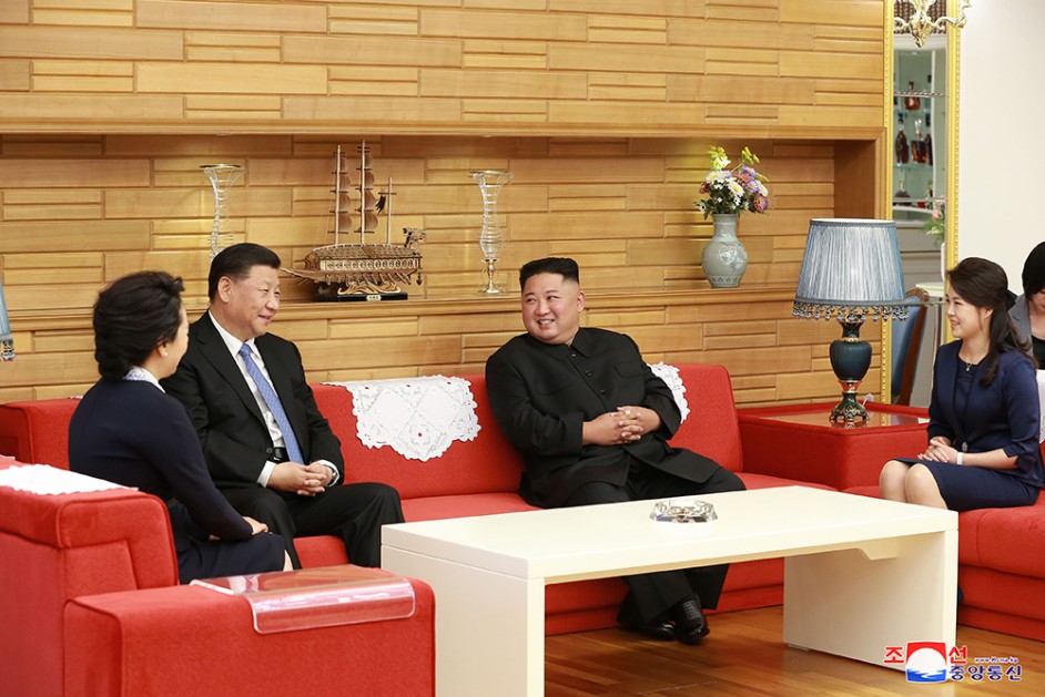 Er besuchte mit seiner Frau Ri Sol Ju das Kumsusan-Gasthaus. Dort wechselten sie mit Xi Jinping und seiner Frau Peng Liyuan warmherzige Grüße und unterhielten sich in einträchtiger familiärer Atmosphäre. Dann ließen sie sich vor den Flaggen beider Staaten fotografieren.