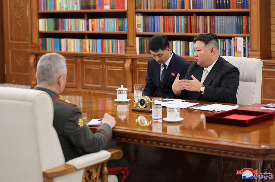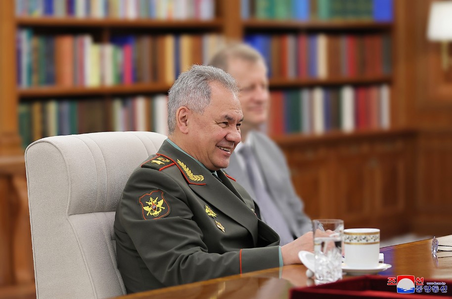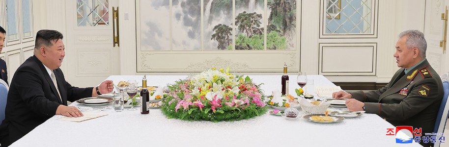 Der hoch verehrte Genosse Kim Jong Un hat Sergej Schoigu, Verteidigungsminister der Russischen Föderation, zum Hauptgebäude des ZK der PdAK eingeladen, mit ihm ein warmherziges Gespräch geführt und mittaggegessen