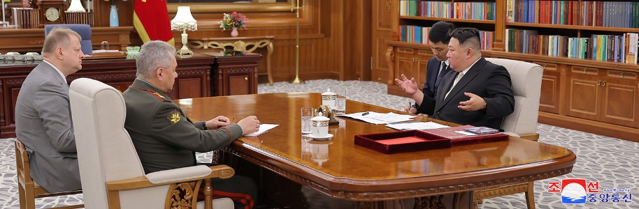 Der hoch verehrte Genosse Kim Jong Un, Generalsekretär der PdAK und Vorsitzender für Staatsangelegenheiten, lud vormittags am 27. Juli den Verteidigungsminister Sergej Schoigu, Leiter der Militärdelegation der Russsichen Föderation, der zum 70. Jahestag des Sieges im Vaterländischen Befreiungskrieg unser Land besucht hatte, zum Hauptgebäude des ZK der PdAK ein.