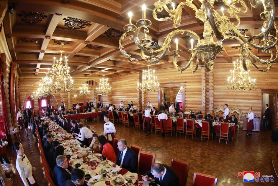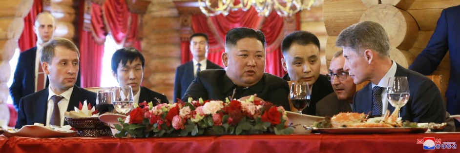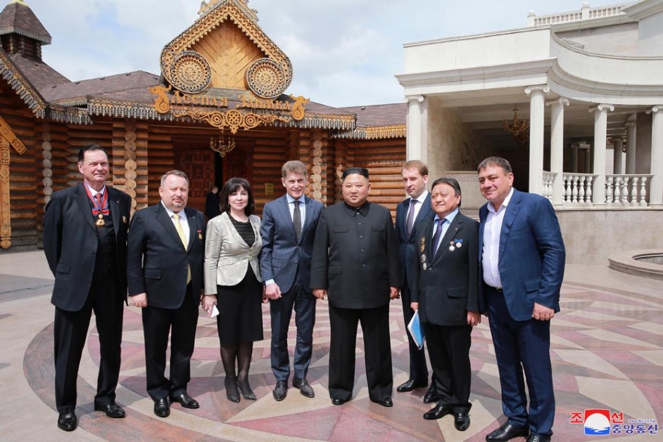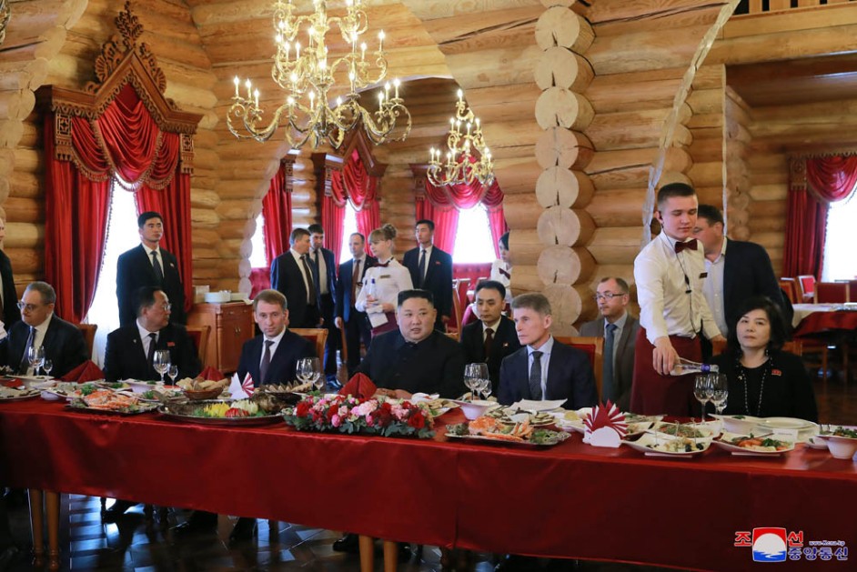 Kim Jong Un, Vorsitzender der PdAK, Vorsitzender des Komitees für Staatsangelegenheiten der DVR Korea und Oberster Befehlshaber der Streitkräfte der DVR Korea, wurde am 26. April zum Mittagessen, das Oleg Kozhemyako, Gouverneur der Primorje-Kraien, gab, eingeladen.