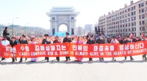 Heute steht der Marschall Kim Jong Un, der dieselbe Ideologie, Führungskunst, Tugend und Charakterzüge wie Kim Il Sung besitzt, an der Spitze des koreanischen Volkes. Dank seiner Führung wird Kim Il Sung als Sonne der Menschheit im Herzen des Volkes ewig fortleben und werden die Loblieder auf den grossen Menschen und die Sonne für immer weltweit ertönen.