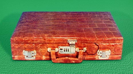 Die Mappe aus Krokodilleder ist ein Geschenk, das Präsident Kim Il Sung am 15. April Juche 66 (1977) vom Führer der kubanischen Revolution, Fidel Castro Ruz, erhielt. Bei den Kubanern, die das Krokodil für kostbar halten und sich um deren Schutz und Vermehrung bemühen, ist es der Brauch, den Staatsoberhäuptern und den hochrangigen Persönlichkeiten der Länder in Freundschaftsbeziehung und den standhaften antiimperialistischen Kämpfern Krokodillederprodukte als Ausdruck des höchsten Respekts und Vertrauens zu schenken. Das Geschenk stellt die Hochachtung von Fidel Castro Ruz vor dem Präsidenten Kim Il Sung dar, der dank seiner unvergänglichen Verdienste um Zeitalter und Revolution absolute Autorität unter den Politikern zahlreicher Länder in der Welt genoss.