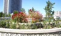 Auf den beiden Seiten der breiten Strasse erstrecken sich die grünen Rasenfelder unendlich. Insbesondere die Mittellinie der Strasse entlang wurden die Blumenständer und die Rasenfelder neu angelegt. Dadurch wurde die Grenze zwischen den beiden Seiten der Fahrbahn noch deutlicher, nahm die Grünfläche zu und wurde die Landschaft noch herrlicher. In diesem Stadtbezirk wurden die Plätze zwischen den Wohnhäusern und öffentlichen Gebäuden effektiv ausgenutzt. Hier wurden Bäume angepflanzt und Rasenfelder angelegt. Der Stadtbezirk treibt die Arbeit, im Monat der Herbstgeneralmobilmachung für Landespflege an den Strassen und in den Gemeinden Bäume und Rasen anzupflanzen, beharrlich voran.