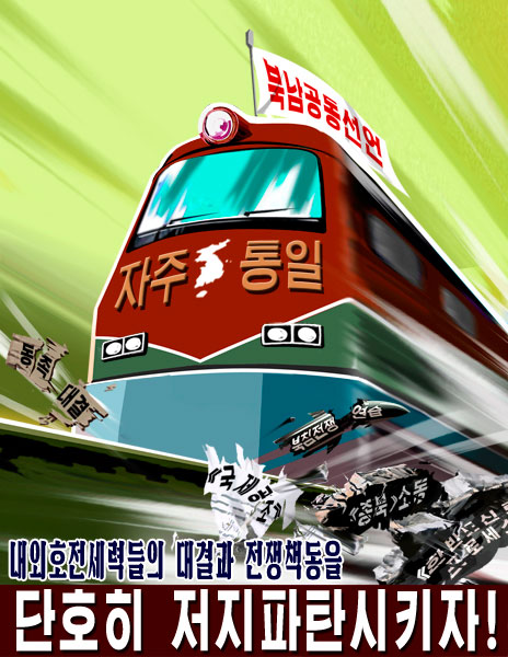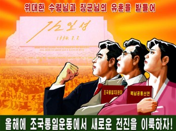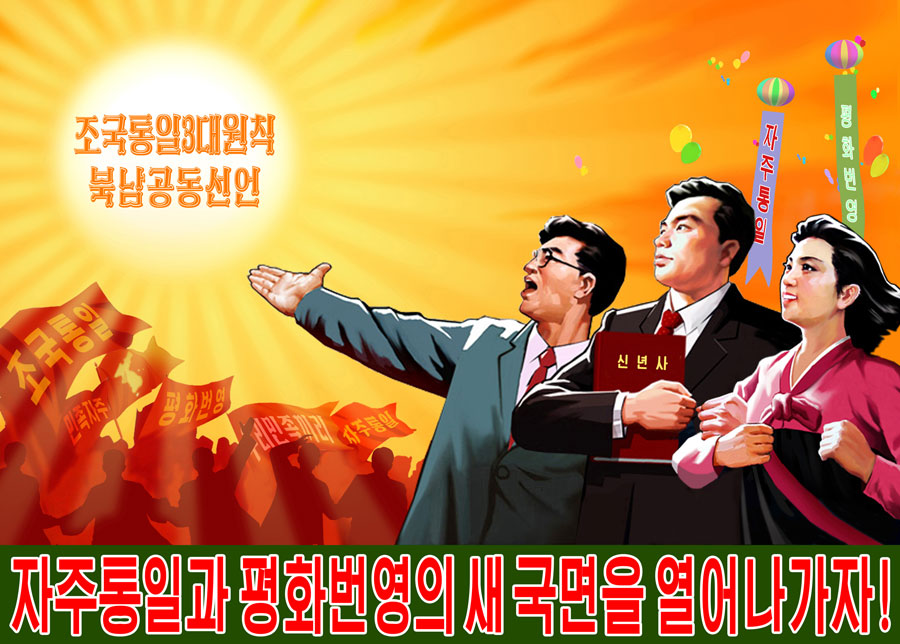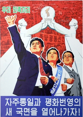 Posters "Let us make a new advance in the movement for national reunification this year, true to the behests of the great leader and general!" and "Let us usher in a new phase of independent reunification, peace and prosperity!" reflect the strong desire and resolution of the Korean people to glorify forever the undying exploits performed by President Kim Il Sung and leader Kim Jong Il in accomplishing the cause of national reunification and wage a dynamic movement for national reunification.