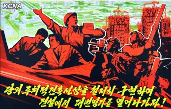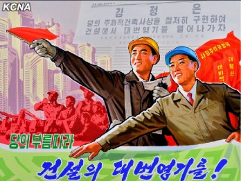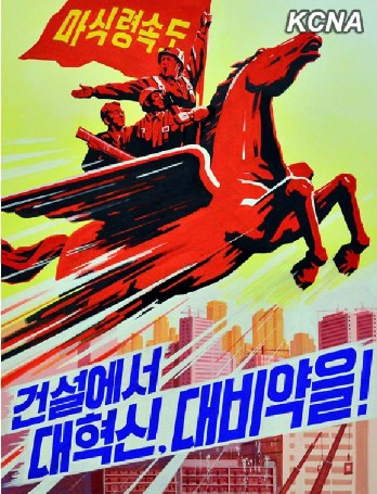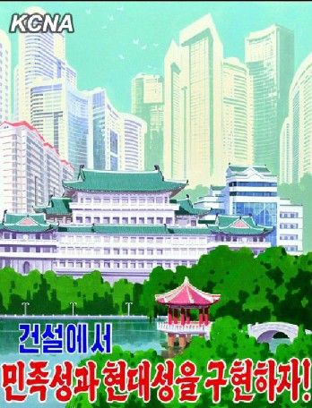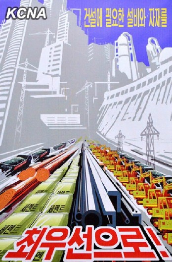 The Mansudae Art Studio, the Central Fine Art Studio and Pyongyang University of Fine Arts produced posters calling for ushering in a fresh heyday in construction.