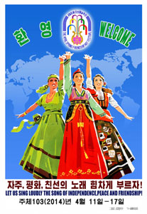 Those posters truthfully represent the stages of the festival on which foreign artistes will sing with profound reverence for the peerlessly great persons of Mt. Paektu for their undying feats for the cause of global independence.