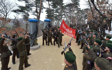 Die revolutionären Streitkräfte der DVRK sind dazu bereit, in Fortsetzung der Tradition von Kim Jong Suk für todesmutige Verteidigung des Führers die Waffe vom Gebirge Paektu in der Hand festzuhalten und die Führung der Revolution mit Leben zu schützen.
