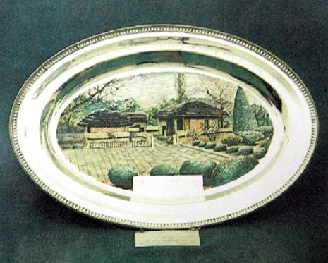 Das silberne Kunstwerk "Das Geburtshaus in Mangyongdae" ist ein Geschenk, das der venezolanische Politiker Guillermo Garcia Ponce während seines Besuches in der DVRK im April Juche 81 (1992) dem Präsidenten Kim Il Sung zu seinem 80. Geburtstag gewidmet hatte.