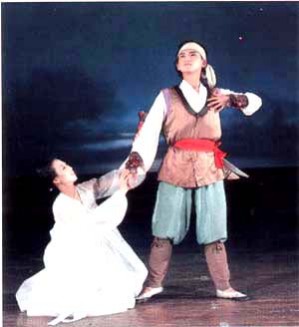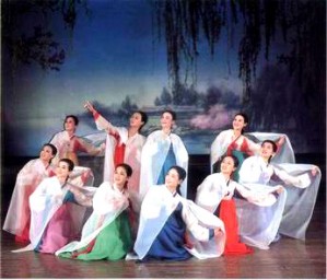 Traditional folk dance pieces like janggo dance, masque dance, wooden-shoes dance, sleeve dance, flower-jar dance and drum dance are depicted in compliance with the aesthetic sense and emotion of the times, each showing charms of Korean dances.