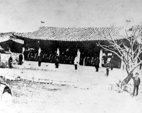 Im Jahr 1875 verübten die japanischen Aggressoren unter dem Vorwand der Kriegsflottenübung mit ihren 3 Kriegsschiffen einschliesslich des Aggressionsschiffes "Unyang" in Hoheitsgewässern Koreas die Spionage und militärische Parade. Sie erkundigten sich heimlich nach dem Stand der Streitkräfte, der Bewachung an der Küste und des Wasserweges Koreas und drangen im August jenes Jahrs in das Meer vor der Insel Kanghwa ein. Ein Boot mit über 20 Aggressoren griff die Batterie Chojijin, Gattertor zur Stadt Seoul, an. Als die koreanische Garnison mit heftigem Feuerschlag darauf reagierte, schoßen die Feinde wie erwartet mit Kanonen auf die friedlichen Wohngebiete und die Insel Yongjong, töteten die Menschen, plünderten das Hab und Gut aus, legten Brand und flohen dann davon. Die unverschämten japanischen Imperialisten schoben der koreanischen Seite die Schuld für diesen Vorfall und zwangen die koreanische Feudalregierung zur Unterzeichung des Vertrages.